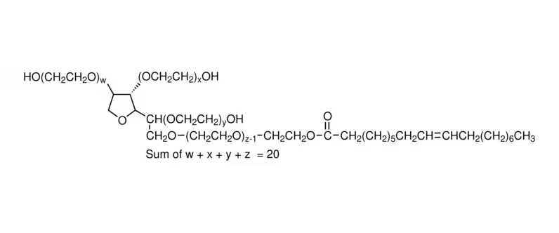 吐温80又称聚山梨酯80,是一种非离子型表面活化剂及乳化剂,化学式为C24H44O6(C2H4O)n。