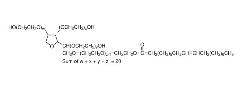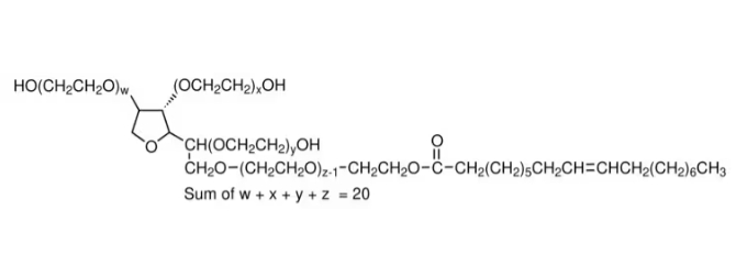 吐温80又称聚山梨酯80,是一种非离子型表面活化剂及乳化剂,化学式为C24H44O6(C2H4O)n。